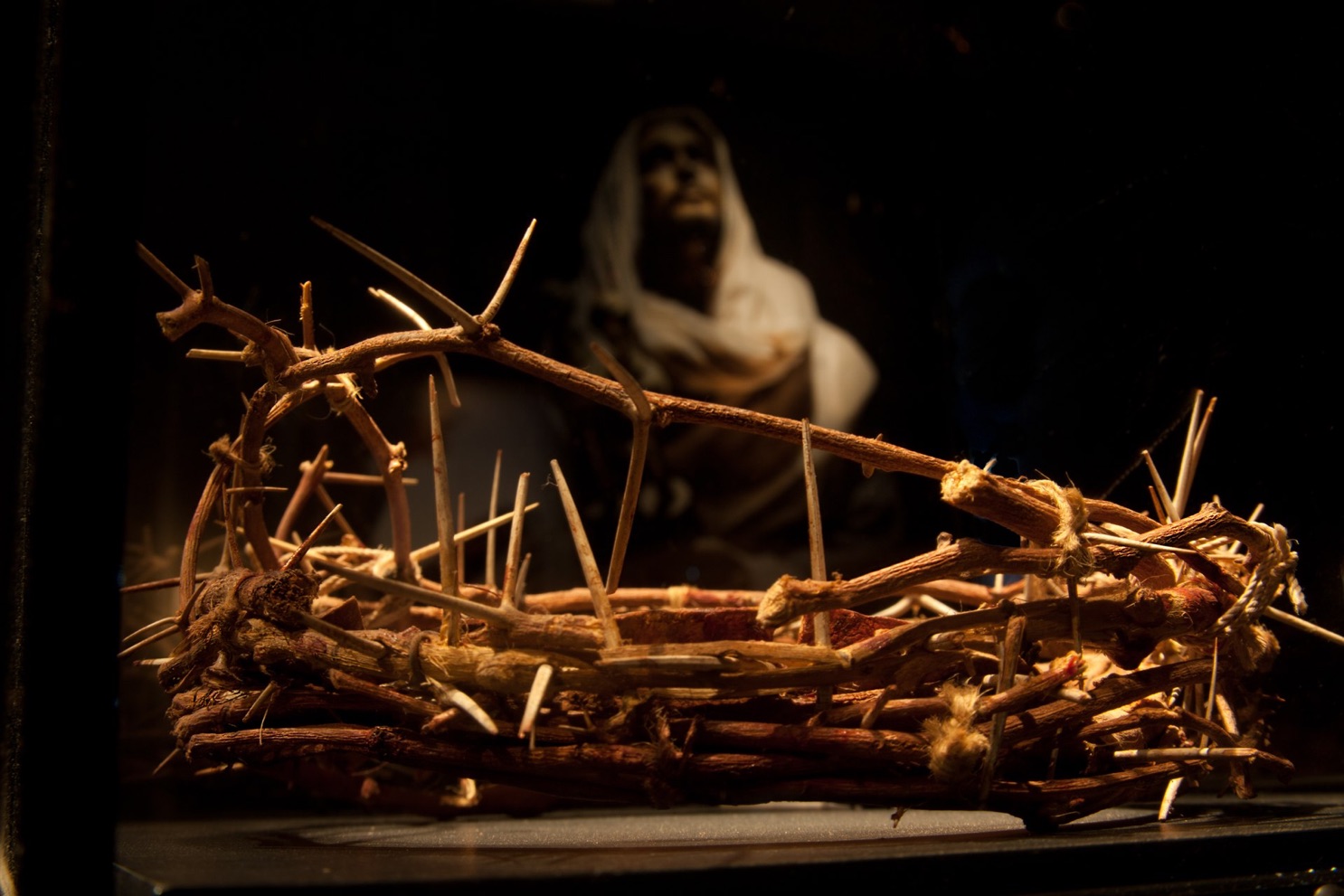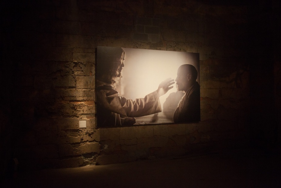 The lighting of the curriator cards was an attempt to resemble streams of sunlight peeking through breaks in a roof that just happened to hit the cards.